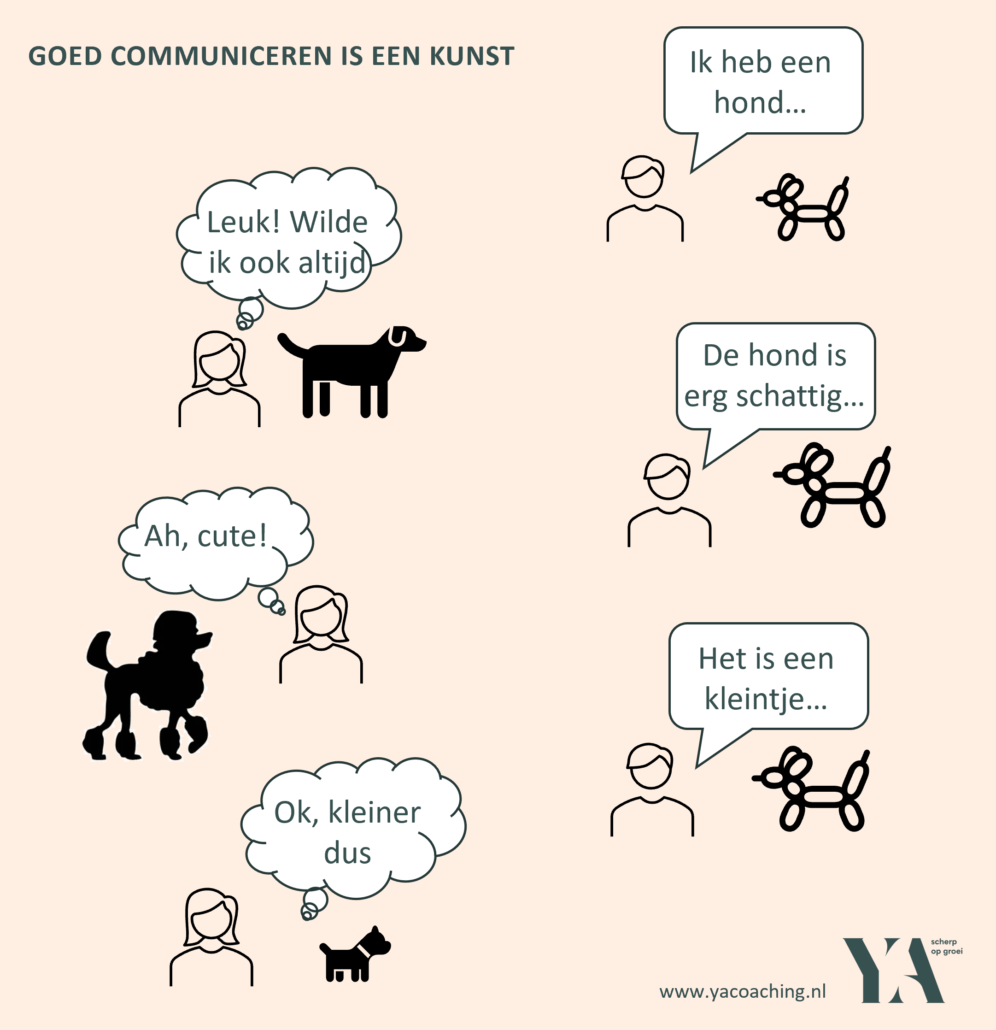 Goede communicatie in je team of organisatie. Hoe doe je dat? Veel praten, meer luisteren, hard praten, murmelend of non-verbaal? De ander leest ons en vult dat op eigen wijze weer in. Zo is communicatie een natuurlijk proces van geven en nemen.